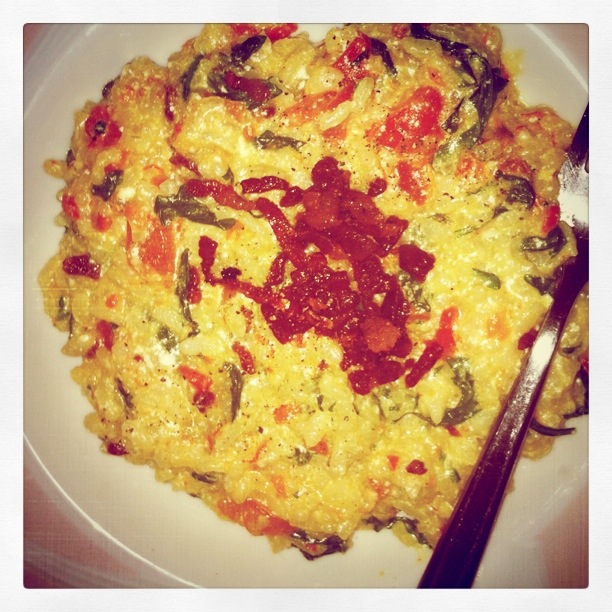 - Risotto should spread on the plate when served (thank you, Tom Collichio).