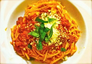 11. Serve into bowls and ladle remaining sauce on top. Finish with basil and parmasen.