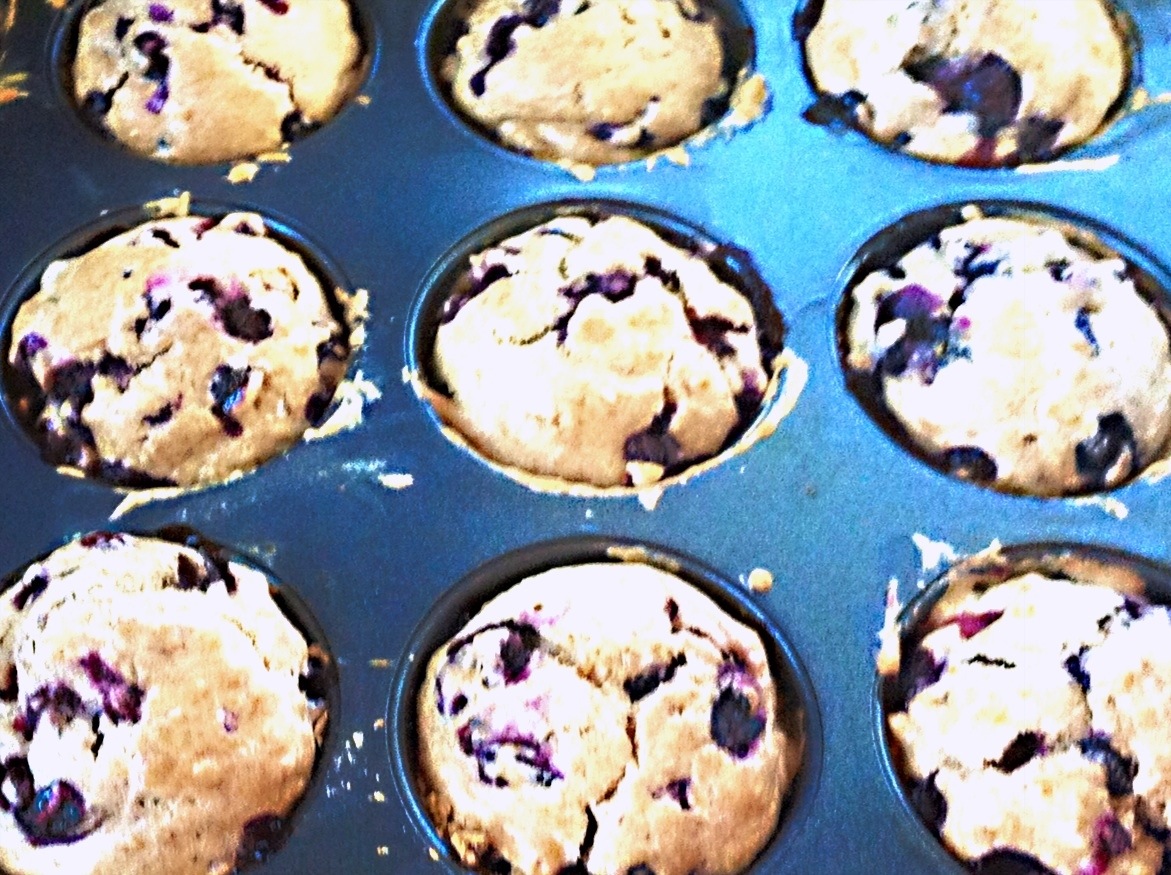 Summer is berry season, and they’re yours for the taking, if you know where to look. A recent hike yielded an enormous amount of huckleberries (similar to blueberries, but more tart) that I ate by the handful until I was drowsy. But what to do with the leftovers? Though I had enough for a pie, I wanted something portable that wasn’t full of sugar, so muffins suited the bill. This simple recipe is one I return to over and over. Yogurt keeps the muffins light and delicious while the butter makes them decadent. Use whatever berries you like – a mixture would be amazing – but make sure they’re fresh and don’t skimp!