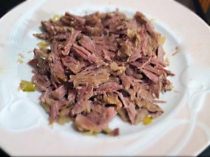 6. If cooking for less than fours, set temperature to high. If not, set temperature to high. 7. When lamb falls apart at the tough. Remove from crock pot and pull. Return shredded meat to liquid.