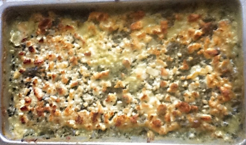 8. Stir in artichokes and spinach. Pour into buttered baking dish and top with reserved Parmesan. Bake for 15 minutes, or until cheese is melted and golden.