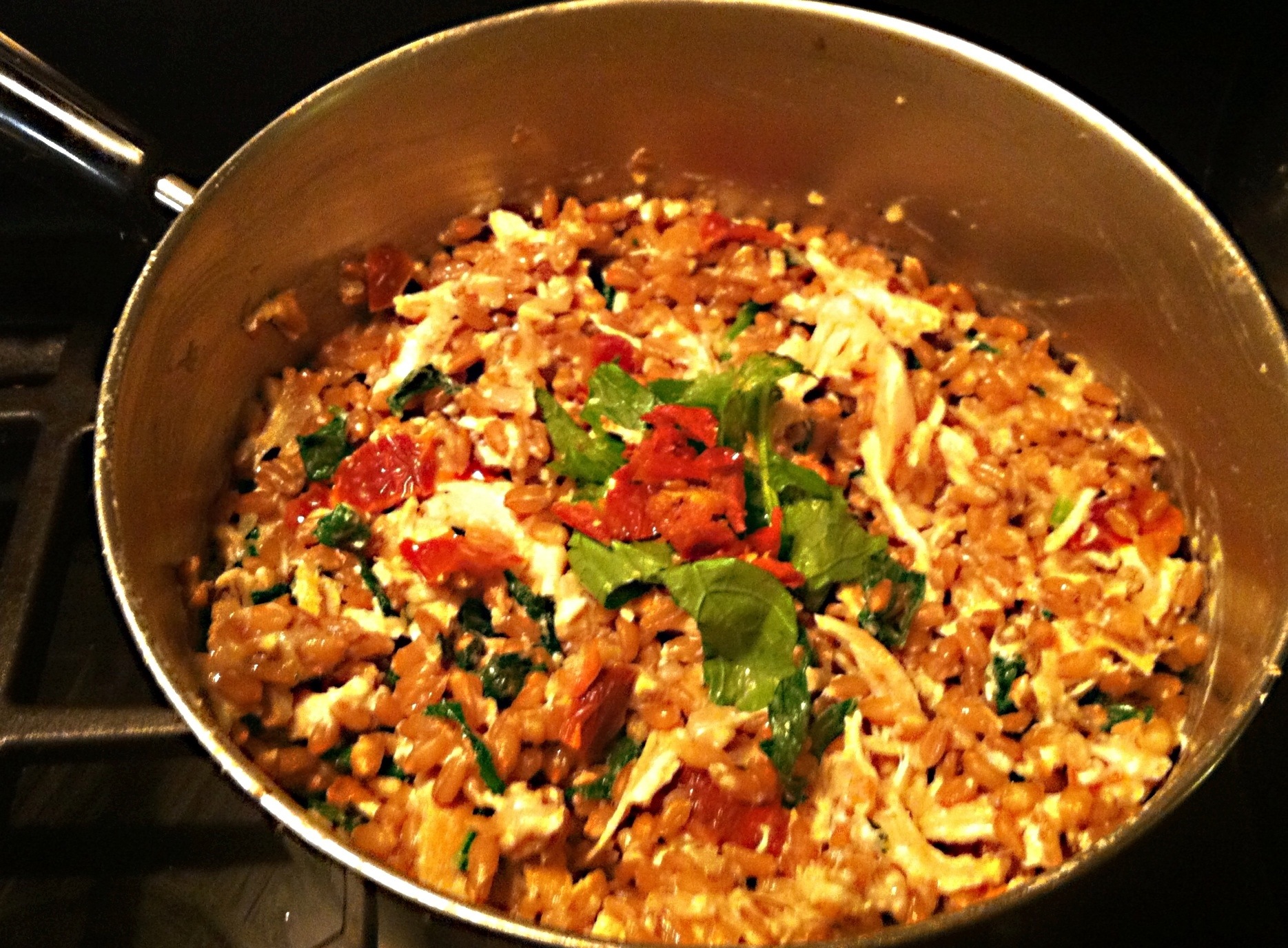 2. Cook the spelt berries as you would risotto – add half a cup of liquid at a time, then stir until until the liquid is evaporated. Repeat til liquid is gone and berries are tender – about 30-40 minutes.