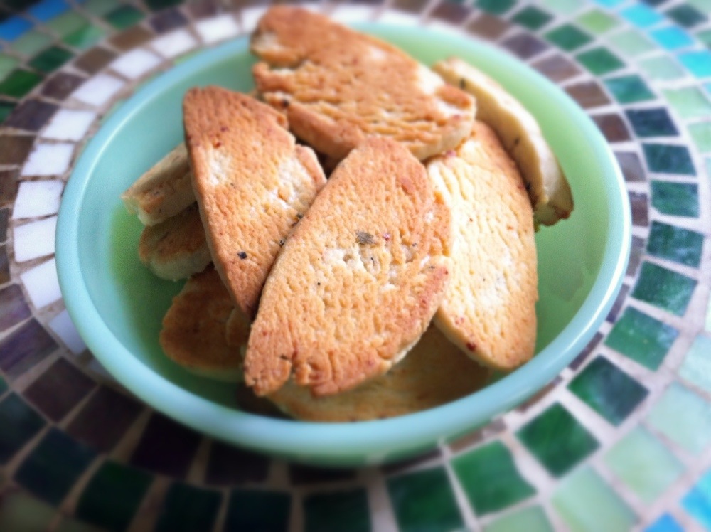 These little guys are more like a savory cookie than a cracker – a biscuitette, if you will. I made a triple batch to give to co-workers as holiday gifts but wound up eating half of them on my own because they were that good. Cheese and olive oil can never go wrong and these are perfect as a holiday hors d’oveures or just for general snacking. Make sure to keep an eye on the oven since these burn quickly.